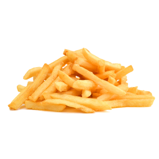Pre-fried and frozen straight cut fries with a cut size of 10×10 mm.